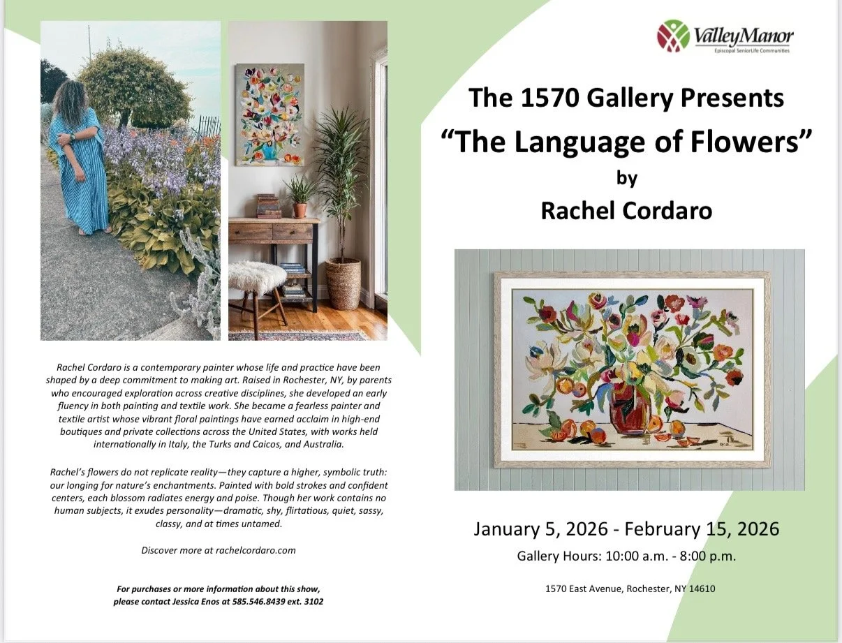 1570 Gallery at Valley Manor Monday, January 5, 2026 10:00 AM Saturday, February 14, 2026 10:00 AM Rachel Cordaro Rochester, NY, United States (map) Google Calendar ICS