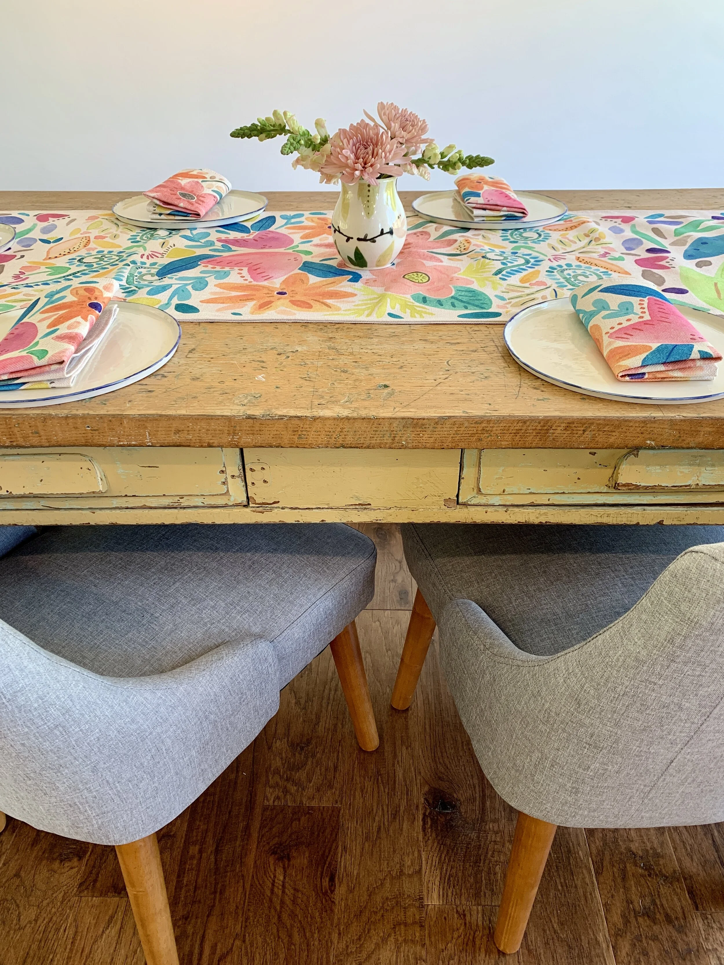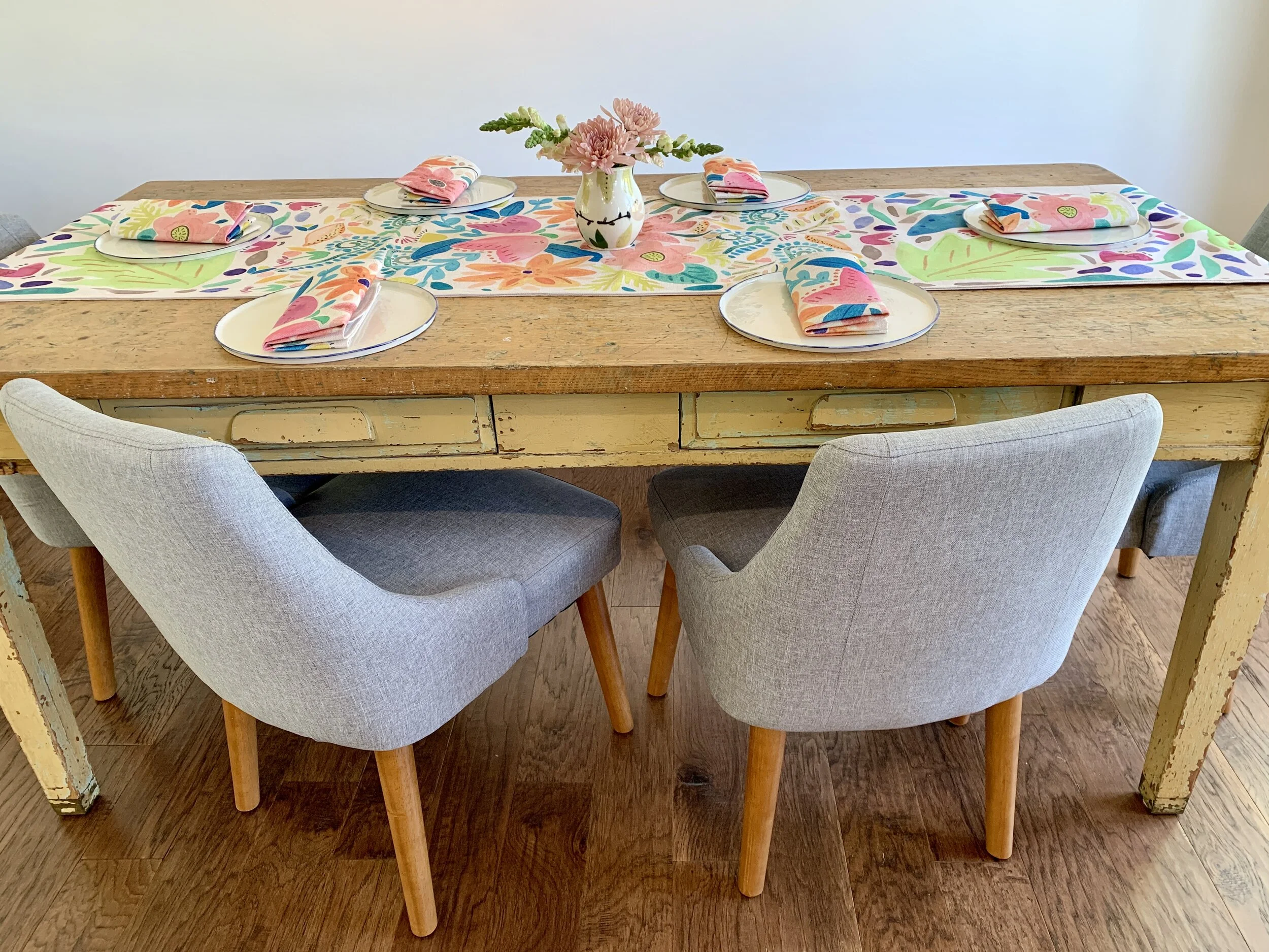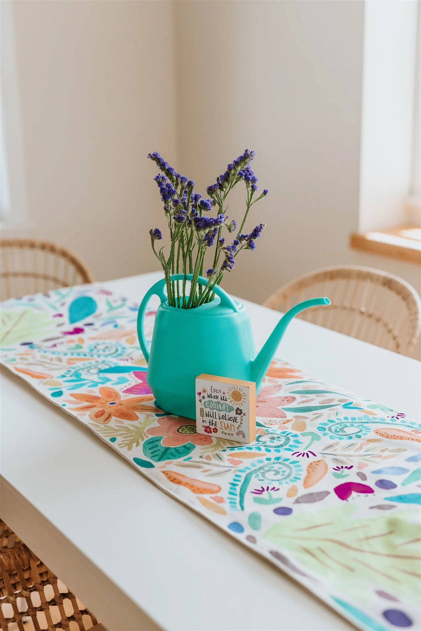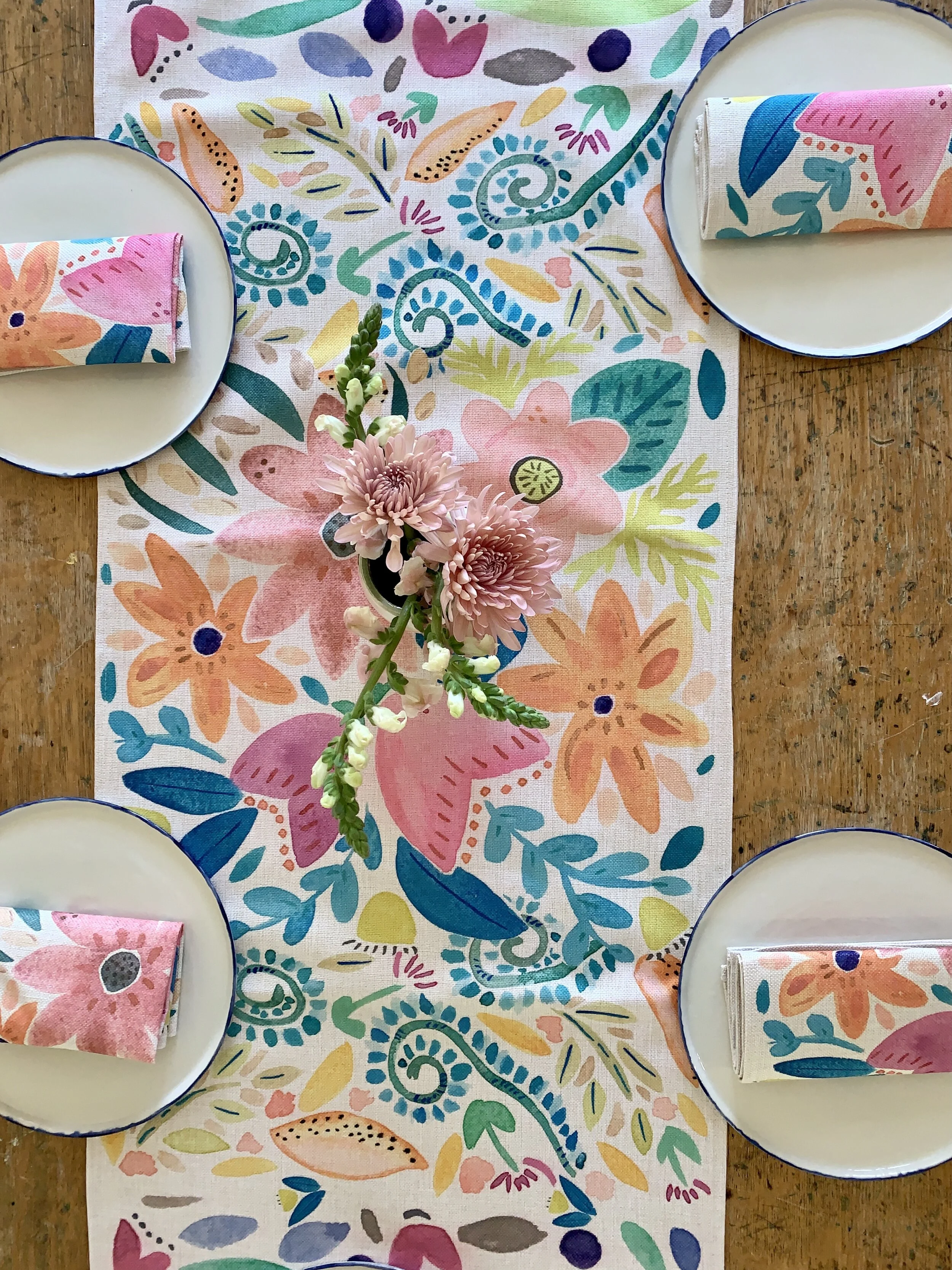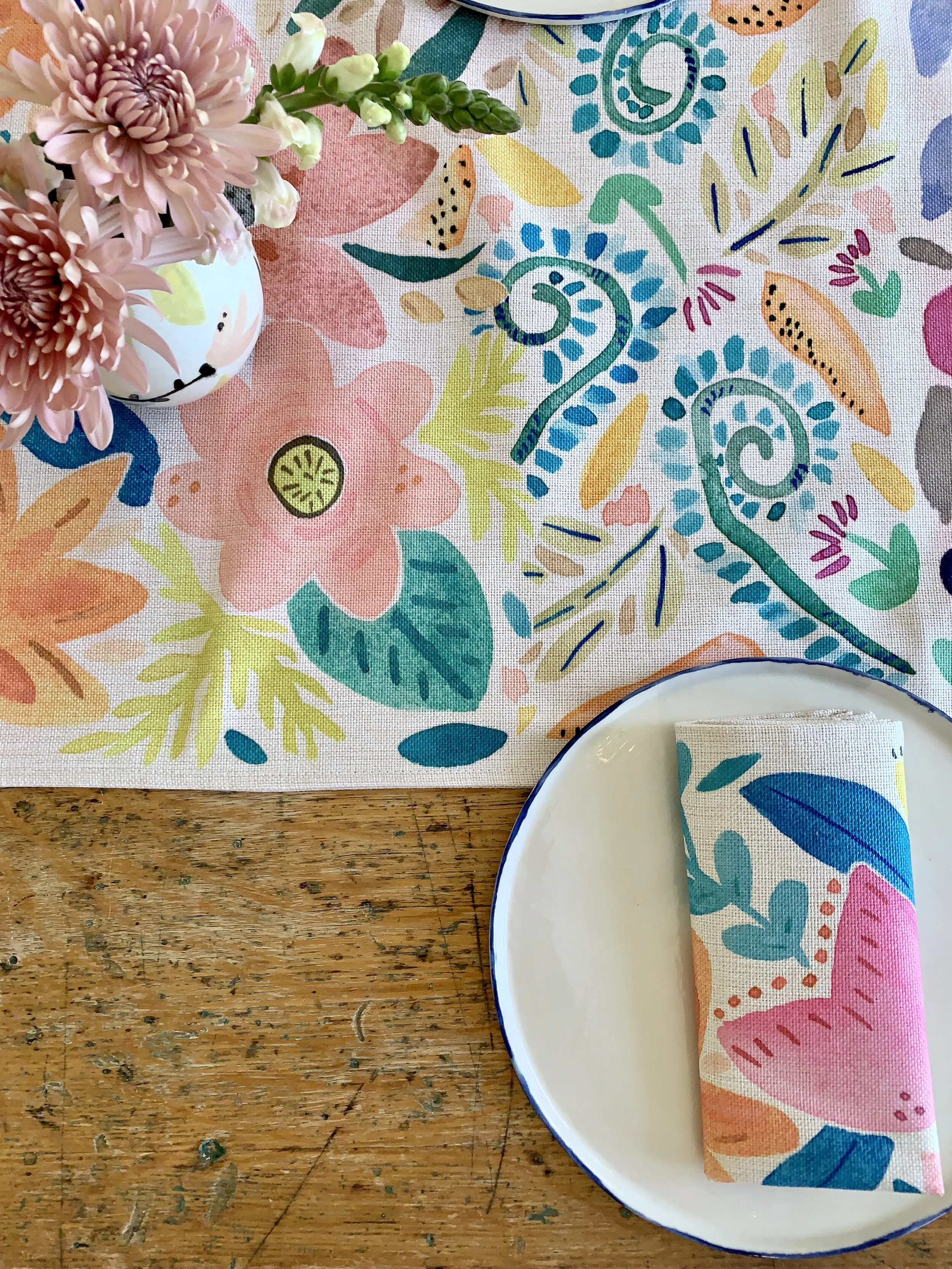Get ready to add a pop of summer to your dining experience with the brand new Summer Table Runner, part of my fabulous Flourish Collection! Measuring a generous 90 inches in length and 20 inches in width, this runner is perfect for your dinning table, island, or even a picnic table! Spread it out and enjoy a delightful picnic with your friends, or use it as a stunning backdrop for a romantic proposal in the park! The lively pattern of ferns, foliage, and energizing botanicals is sure to make you crave some refreshing lemonade or sweet tea. Want to take your table decor up a notch? Add my matching cloth napkins for a complete and cohesive look at your next dinner party or casual brunch! And the best part? This highly durable cotton linen fabric is a breeze to care for - simply pop it in the washer and dryer, and it's ready for your next gathering. Don't miss out on this must-have addition to your summer table decor!